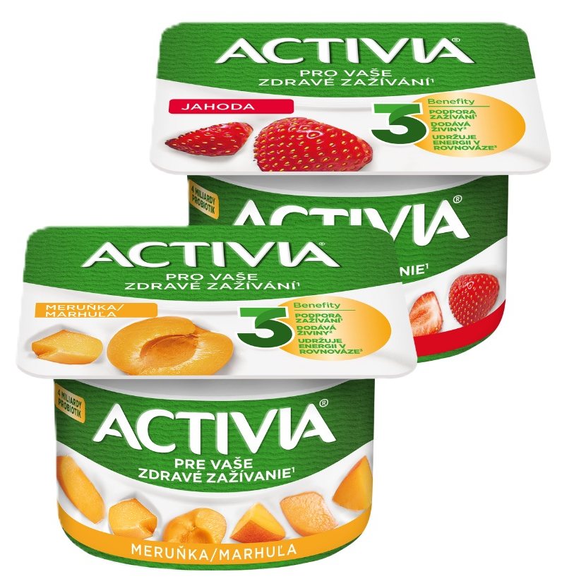 Jahoda: MLÉKO, jahodová složka 12 % (kousky jahod 69 %, voda, cukr, barvicí koncentráty z černé mrkve a mrkve, přírodní aroma), zahuštěné odstředěné MLÉKO, cukr, MLÉČNÉ bílkoviny, jogurtové kultury a Bifidus ActiRegularis® CNCM I-2494 v počtu min. 4x10^9/100g. Může obsahovat stopy OŘECHŮ a LEPKU. Meruňka: MLÉKO, meruňková složka 12 % (kousky meruněk 66, 8 %, voda, cukr, koncentrovaná mrkvová šťáva, přírodní aromata), zahuštěné odstředěné MLÉKO, cukr, MLÉČNÉ bílkoviny, jogurtové kultury a Bifidus ActiRegularis® CNCM I-2494 v počtu min. 4x10^9/100g. Může obsahovat stopy OŘECHŮ a LEPKU.
