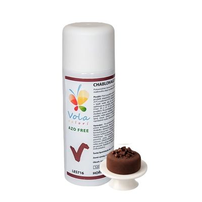 Potravinářská barva ve spreji na bázi rostlinného tuku na dekoraci semifred, zmrzlin a mousse. Vytváří sametový efekt na povrchu cukrářského výrobku.