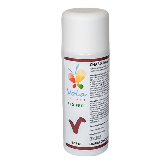 Potravinářská barva ve spreji na bázi rostlinného tuku na dekoraci semifred, zmrzlin a mousse. Vytváří sametový efekt na povrchu cukrářského výrobku.