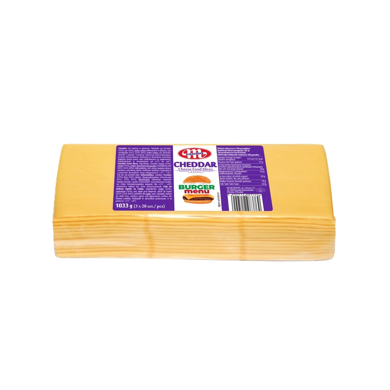 Počet plátků: 68ks. Ideální použití do burgerů.
