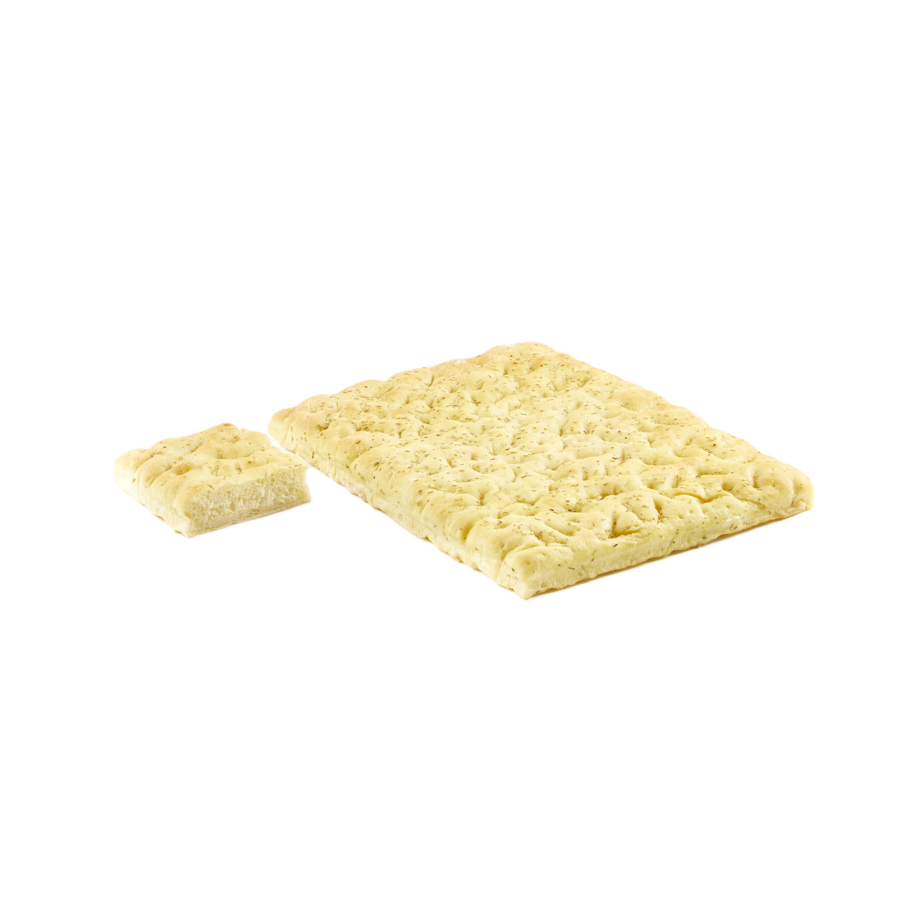 Focaccia s rozmarýnem, plně dopečeno. Doba rozmrazování: 30min., pro křupavost můžete dopéct 6min. na 220°C. Od rozmrazení spotřebujte do 24 hodin.