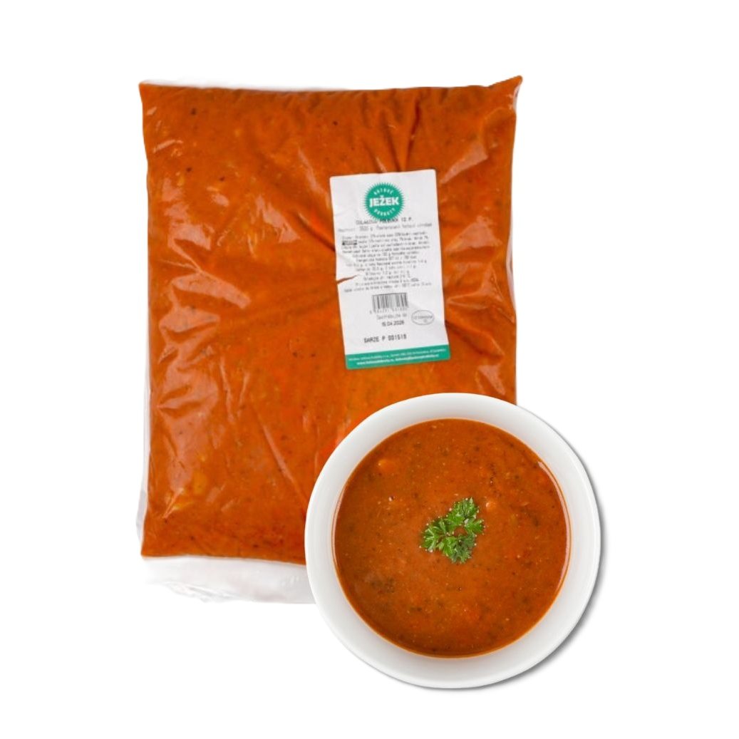 Hustá a výrazně kořeněná polévka inspirovaná tradičním českým gulášem. Plná masa, cibule a papriky, s poctivou chutí, která zasytí a zahřeje. Ideální volba pro rychlé občerstvení doma, v práci i na akcích – stačí ohřát a podávat. Karton obsahuje 2 vakuové sáčky, v každém sáčku je 10 porcí. Trvanlivost až 7 měsíců.