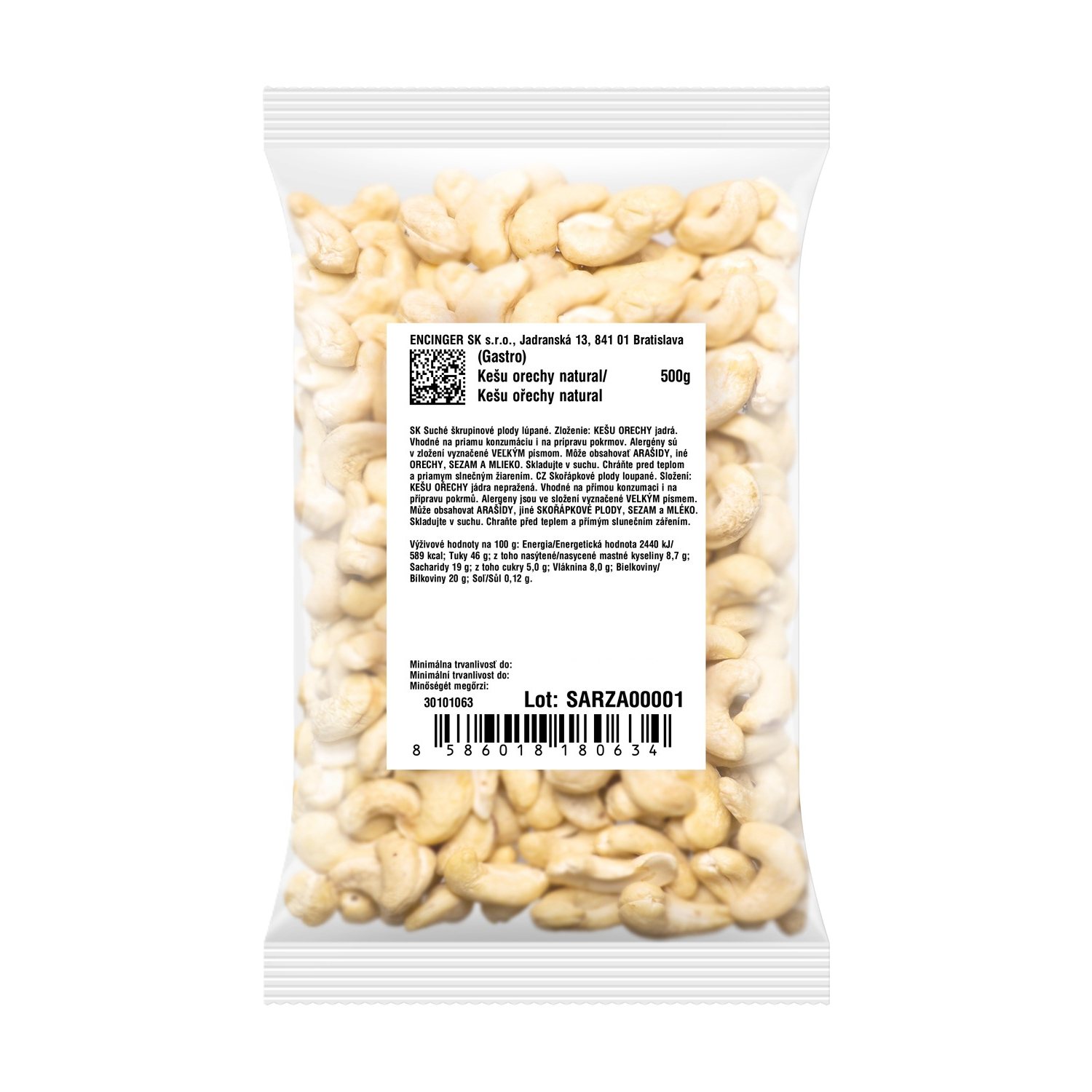 Kešu ořechy, jádra. Alergen je ve složení vyznačen tučným písmem. Výrobek může obsahovat arašídy, jiné skořápkové plody, sezam a mléko.