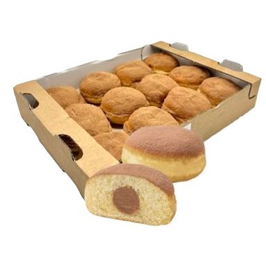 Kynuté těsto 70% (pšeničná mouka, voda, cukrářská směs (pšeničná mouka, sušená syrovátka z mléka, emulgátory, mono a diglyceridy mastných kyselin, mono a diglycerity mastných kyselin esterifikované kyselinou. vaječný bílek prášek, kukuřičná mouka, slunečnicový olej, barvivo, výtažky z kurkumy a papriky, prostředek na úpravu mouky. řepkový olej, pasterizovaná vaječná hmota, cukr , droždí, sůl, náplň 19% (voda, mléčná čokoláda 25%, cukr, kakaové máslo, sušené plnotučné mléko, kakaová hmota, přírodní vanilkové aroma. Pšeničný škrob, palmový olej, řepkový olej.