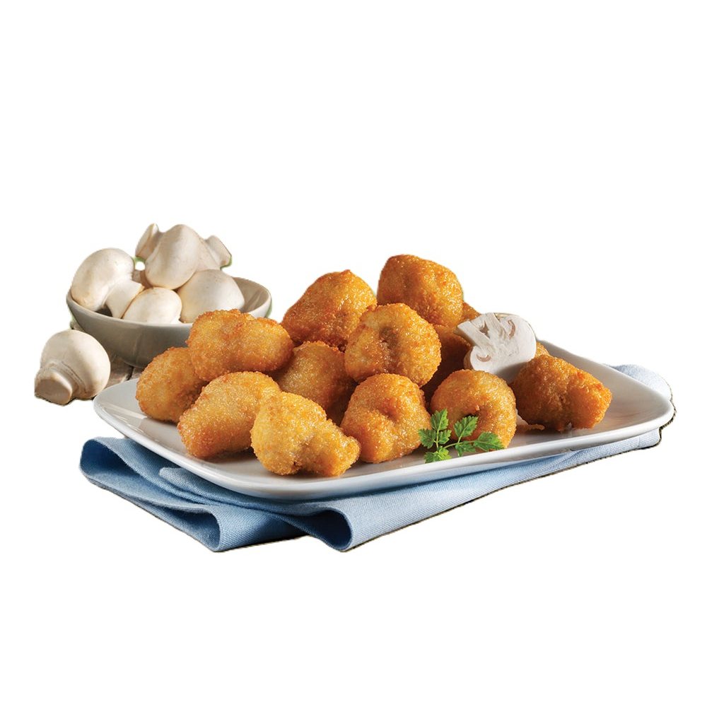 51% Žampióny, Pšeničná Mouka, Voda, Rostlinný Olej (Slunečnicový, Řepkový Olej), Pšeničná Mouka Obohacená (Vápník, Železo, Thiamin, Niacin), Bramborový Škrob, Vaječný Bílek, Bramborový Dextrin, Jedlá Sůl, Kvasnice, Kypřící Látky: E 450, E 500, Výtažek Z Černého Pepře