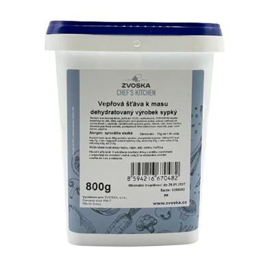 bramborový škrob, sůl (13,3%), maltodextrin, SYROVÁTKA sladká, kvasničný extrakt, látka zvýrazňující chuť-glutaman sodný, sušený rostlinný tuk (palmový), aroma-(vepřové,hovězí), zahušťovadlo-guarová guma, česnek, cukr, kmín, barvivo – (karamel, paprikový extrakt), protispékavá látka-fosforečnan vápenatý, pepř, paprika, nové koření
