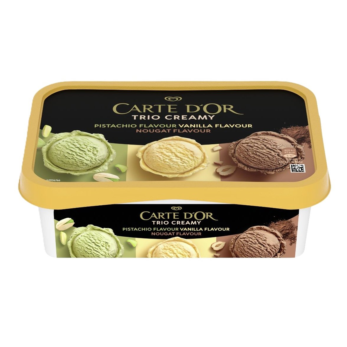 obnovené odtučněné MLÉKO, glukózo-fruktózový sirup, cukr, kokosový tuk, dextróza, glukózový sirup, sušená SYROVÁTKA, pasta z LÍSKOVÝCH OŘECHŮ (1 %), sušené odtučněné MLÉKO, kakao se sníženým obsahem tuku (0,5 %), PISTÁCIOVÁ pasta (0,5 %), emulgátor (mono- a diglyceridy mastných kyselin), aromata (obsahují MANDLE), stabilizátory (guma tara, guma guar, karagenan, karubin), špenátový prášek, barviva (kurkumin, karoteny). Může obsahovat PŠENICI, ARAŠÍDY, SÓJU, VLAŠSKÉ OŘECHY, KEŠU OŘECHY, PEKANOVÉ OŘECHY a MAKADAMOVÉ OŘECHY.